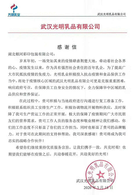 2020年年初,面對突如其來的疫情,全國上下眾志成城,齊心合力,共抗疫情。銀河人也不例外,第一時間投身到這場沒有硝煙的戰役中。各類醫療救援物資、民生物資,通過銀河人生產的紙箱,送達戰“疫”前線。